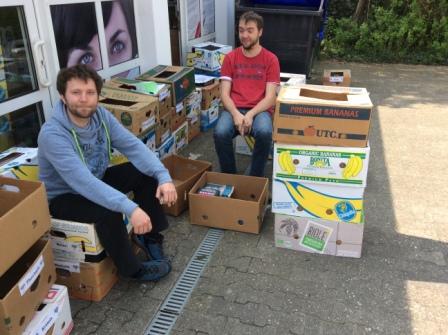 1750,- Euro - das war das Ergebnis des Frühjahr-Bücherflohmarktes. Zwar regnete es am Morgen zunächst, doch ab 11 Uhr konnten die Planen entfernt und der Verkauf freigegeben werden. Bis zum Abbau am späten Nachmittag blieb es trocken und die vielen ehrenamtlichen Helfer hatten alle Hände voll zu tun, um dem Andrang gerecht zu werden.