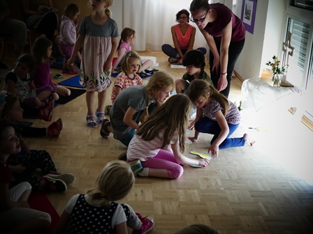 Bei unserer Abschluss-Andacht genossen unsere JoBu-Riesen noch einmal alle Aufmerksamkeit. Mit einer gemeinsamen Aktion der Kinder, bei der sie ihren Weg "Von der KiTa...In die Schule" symbolisch mit ihren eigenen Fußabdrücken abschritten, durften sie Gemeinschaft erleben.